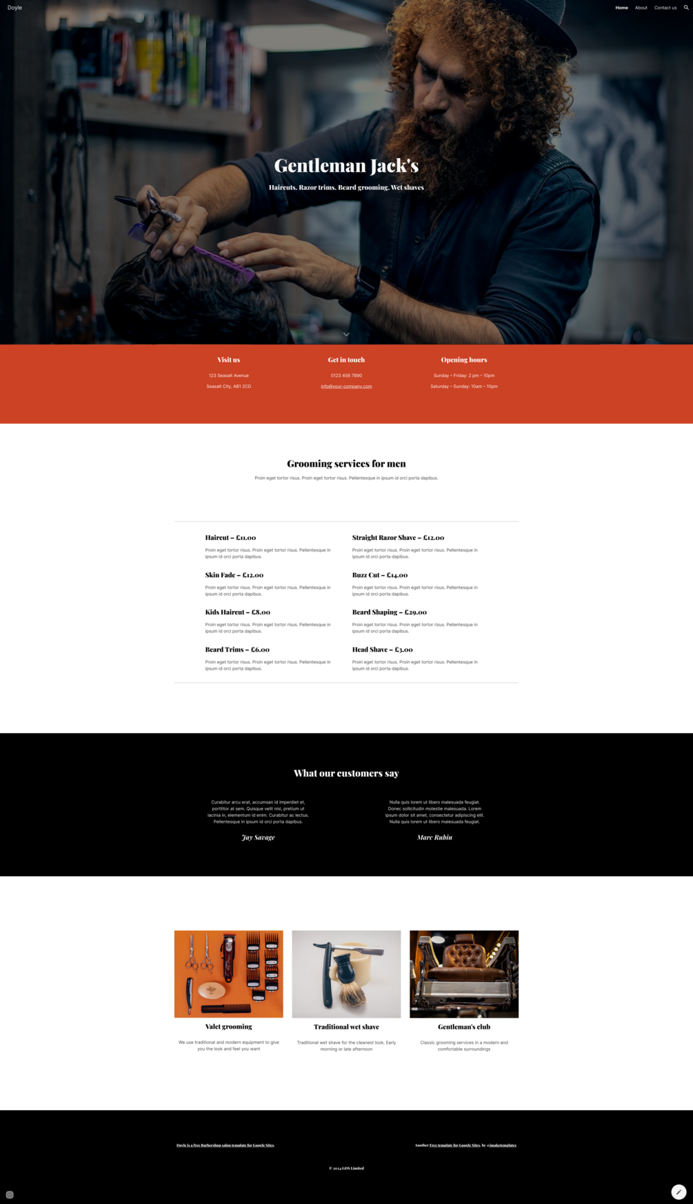 Doyle is the perfect theme for your salon or barbershop. With the statement banner image at the top and its clear presentation, it's ideal to promote your products and services - whomever your audience.