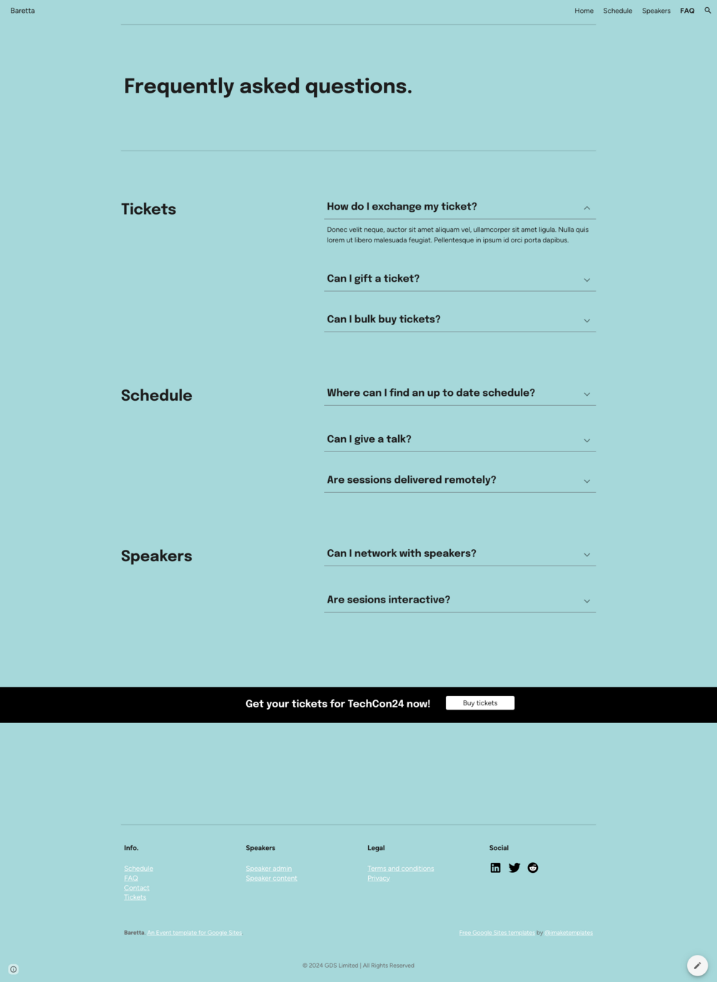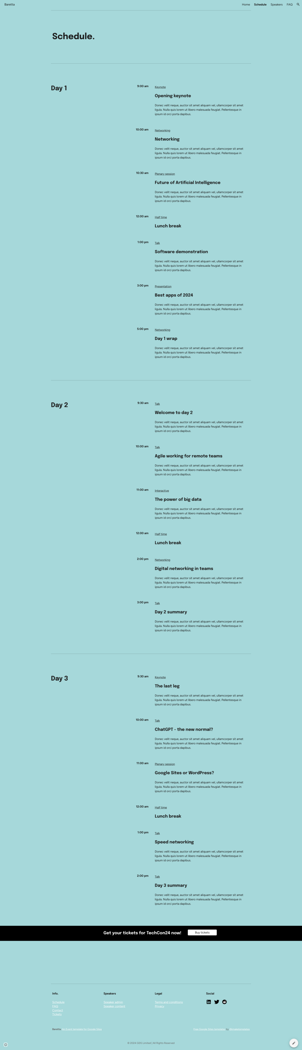🎫 Baretta : Free Google Sites Event / Conference template