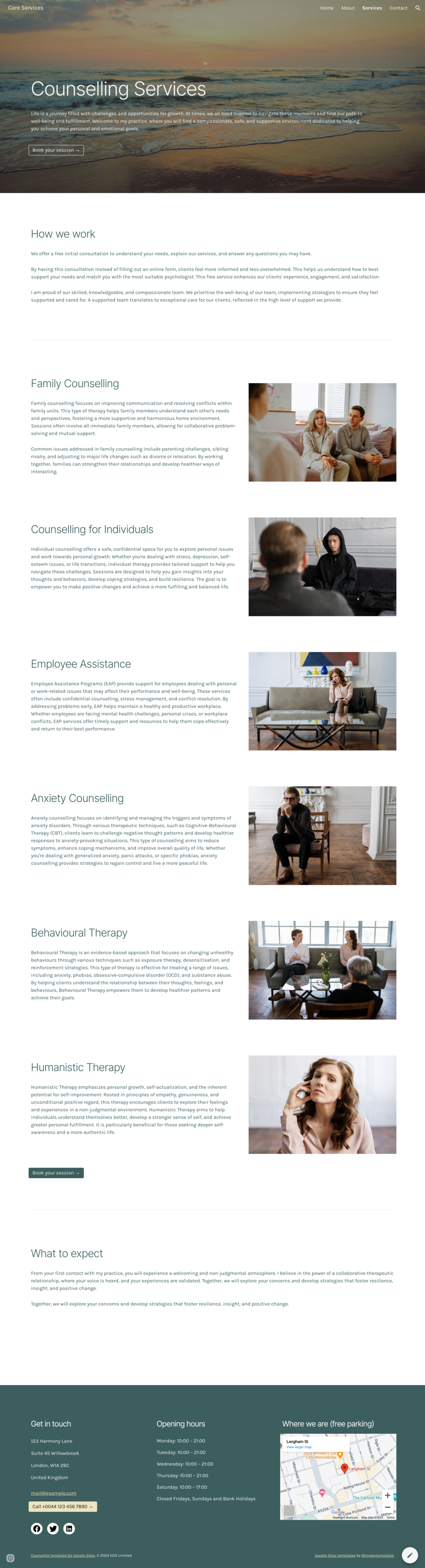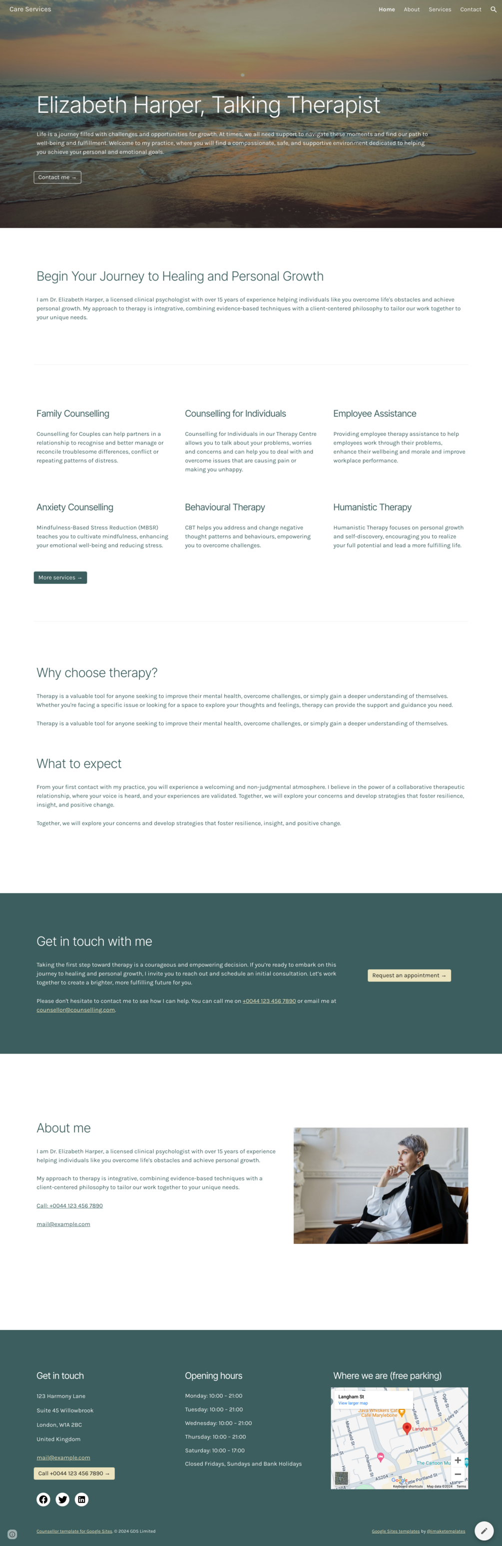 👩🏾⚕️ Logan : Counsellor / Wellness / Therapy website template for Google Sites