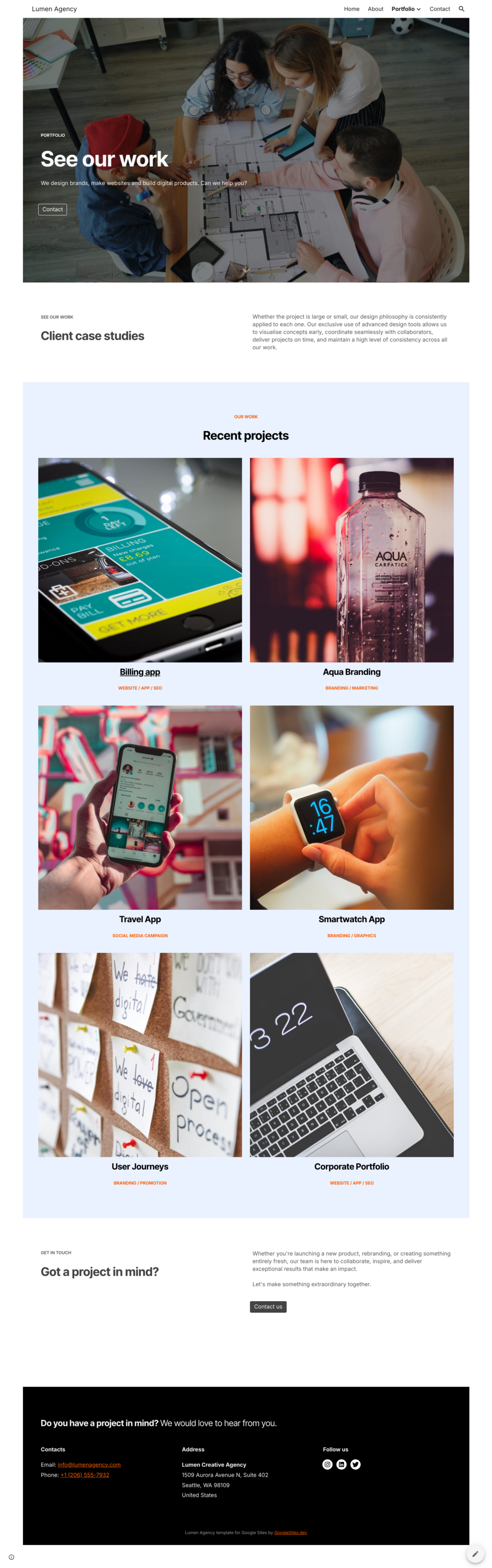 Run a creative agency? Get Lumen, a smart Agency template for Google Sites