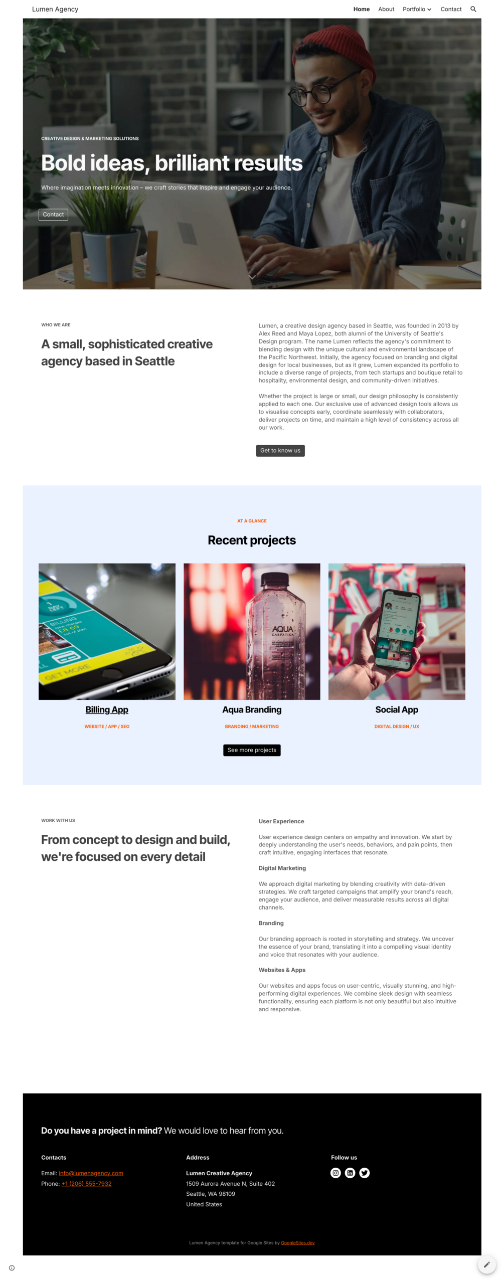 Run a creative agency? Get Lumen, a smart Agency template for Google Sites