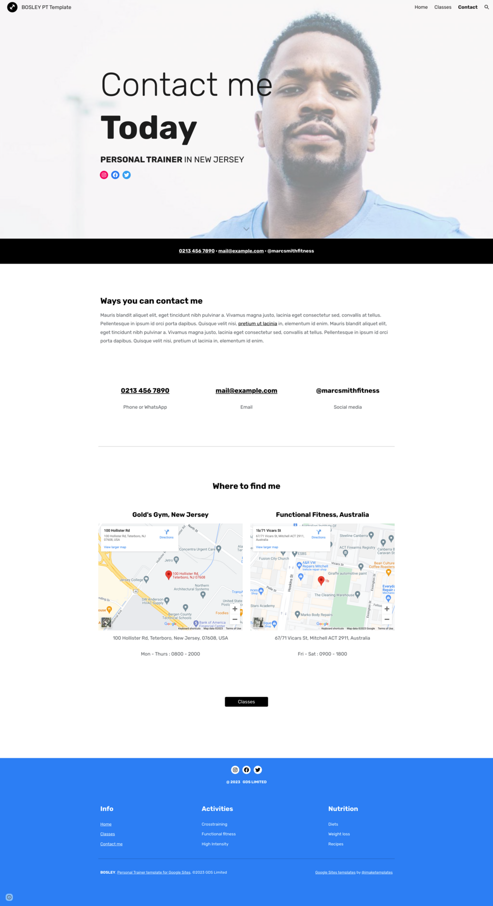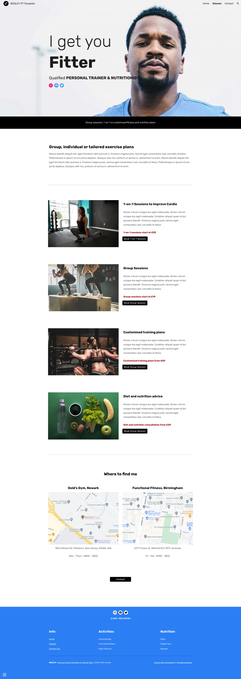 🏋️♂️ Bosley : Personal trainer / fitness instructor template for Google Sites