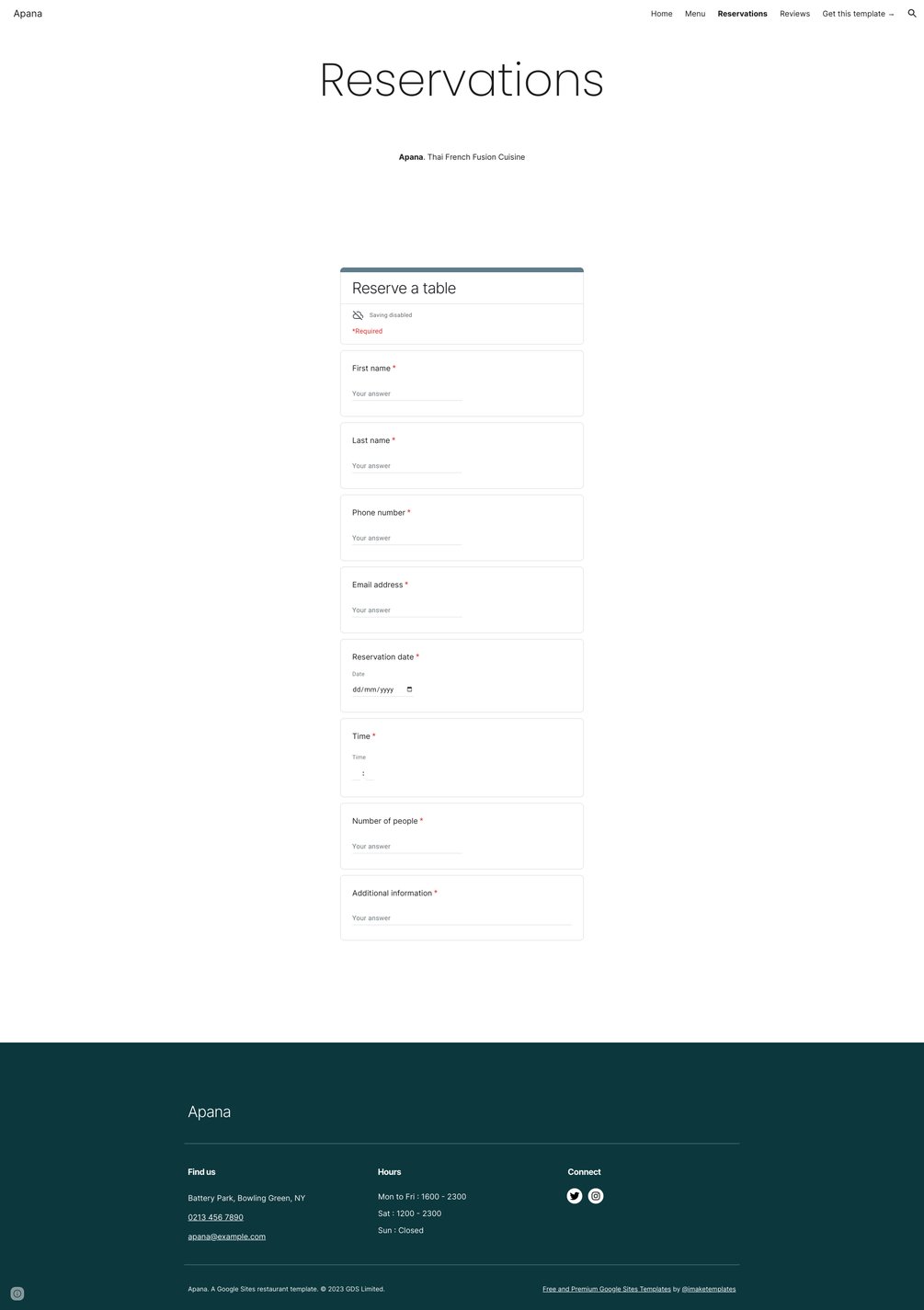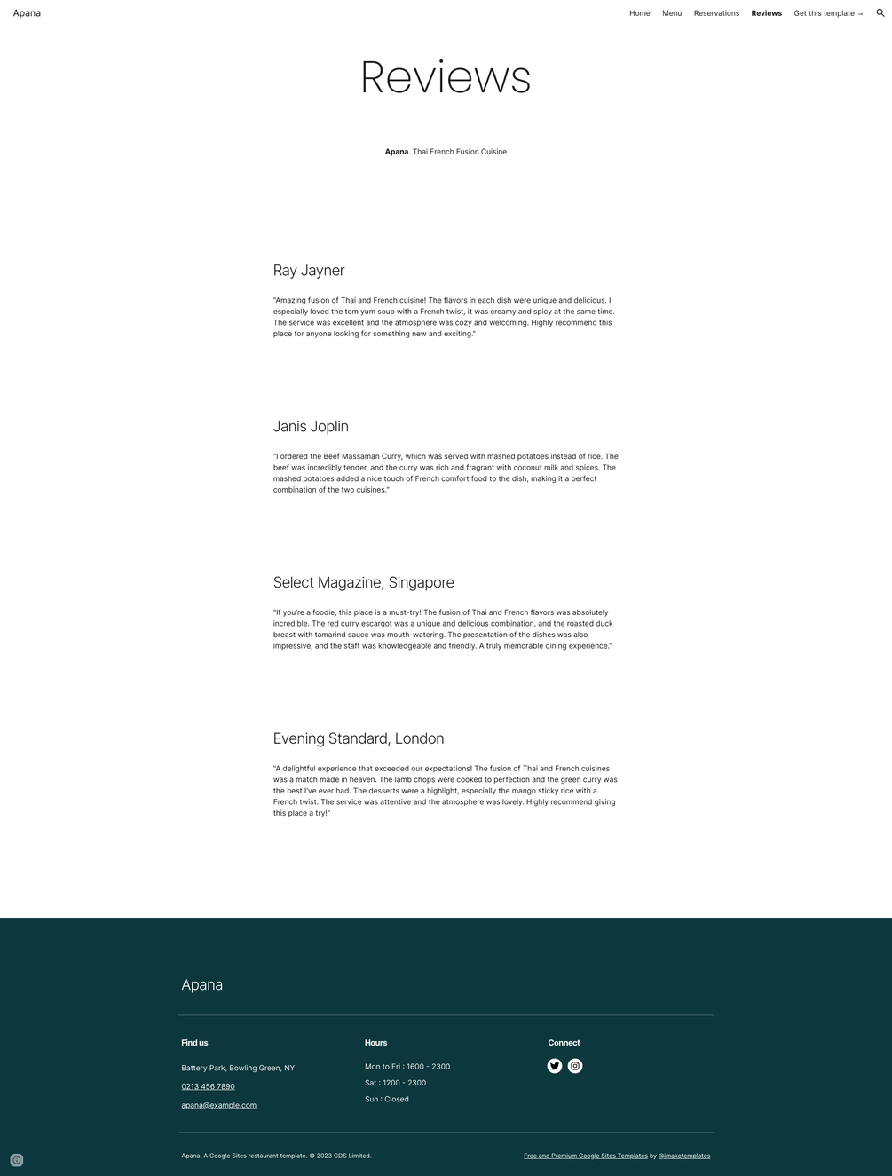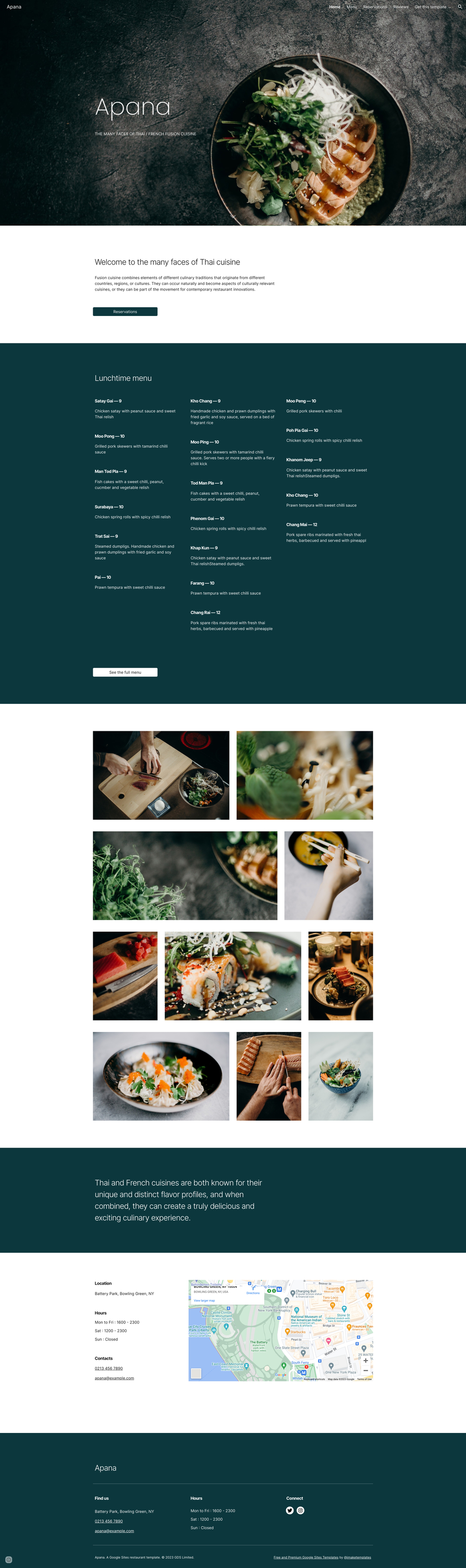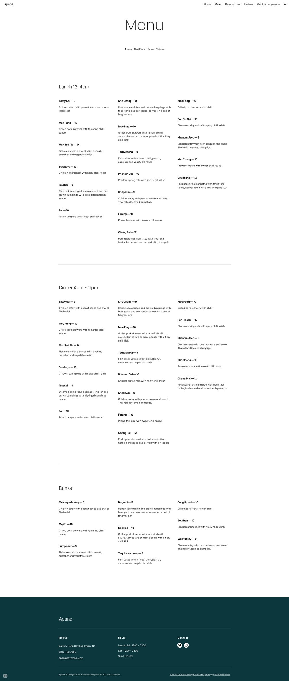Are you a restaurant owner looking to create a beautiful and functional website to showcase your menu and services? Look no further! With my Apana restaurant template for Google Sites, you'll have everything you need to create a stunning website that perfectly captures the essence of your restaurant.