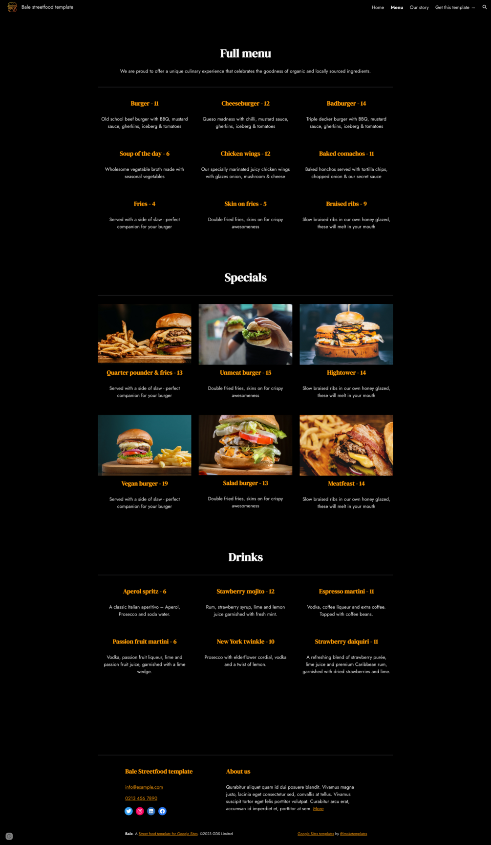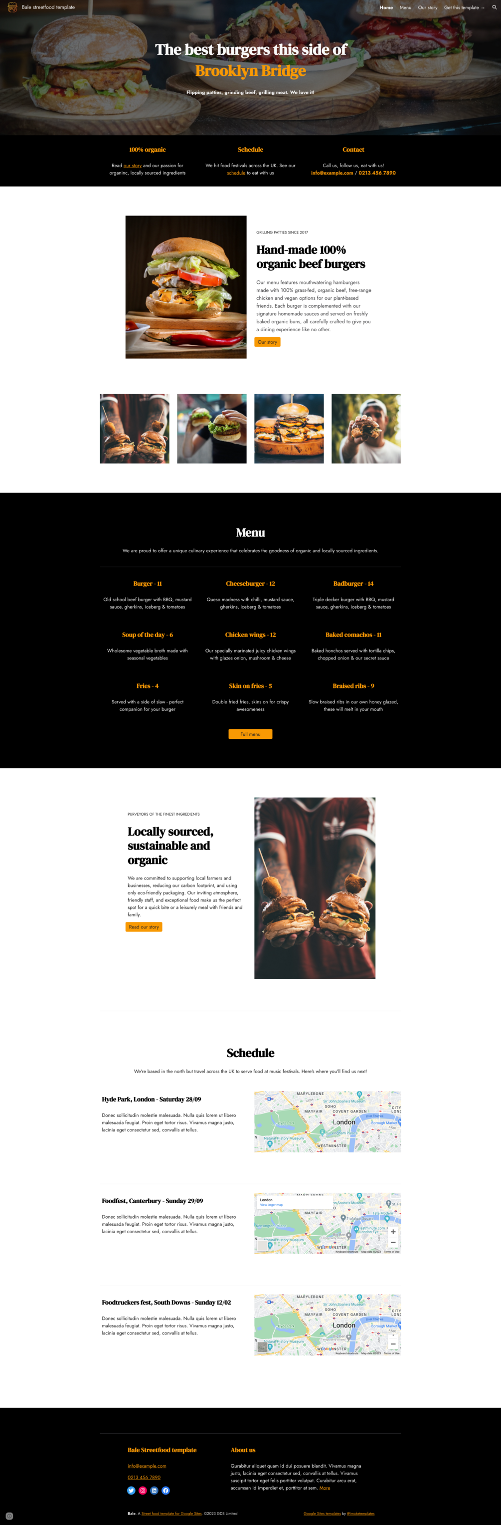 🍔 Bale : Google Sites template for Street food business, burger joint or cafe