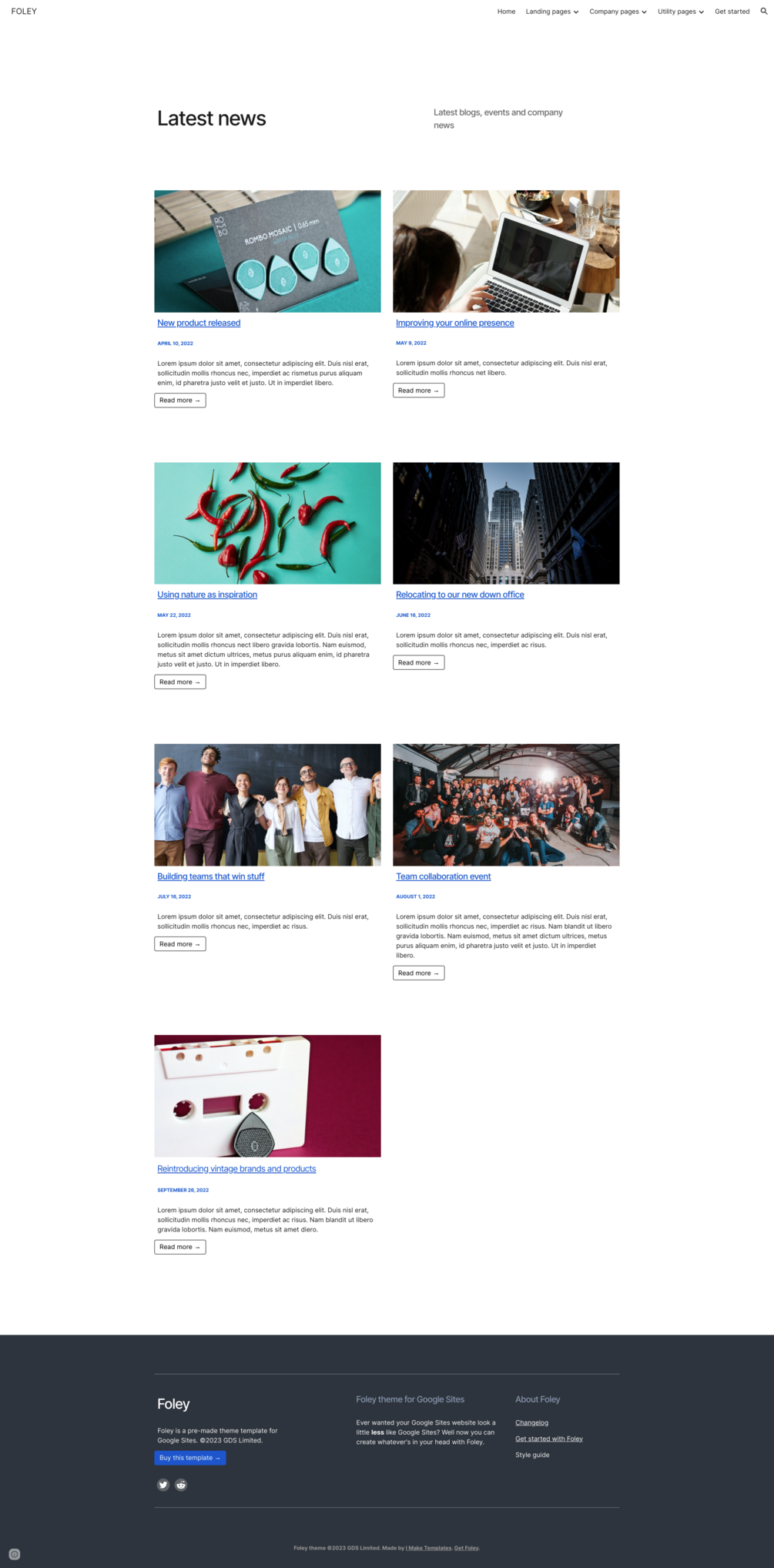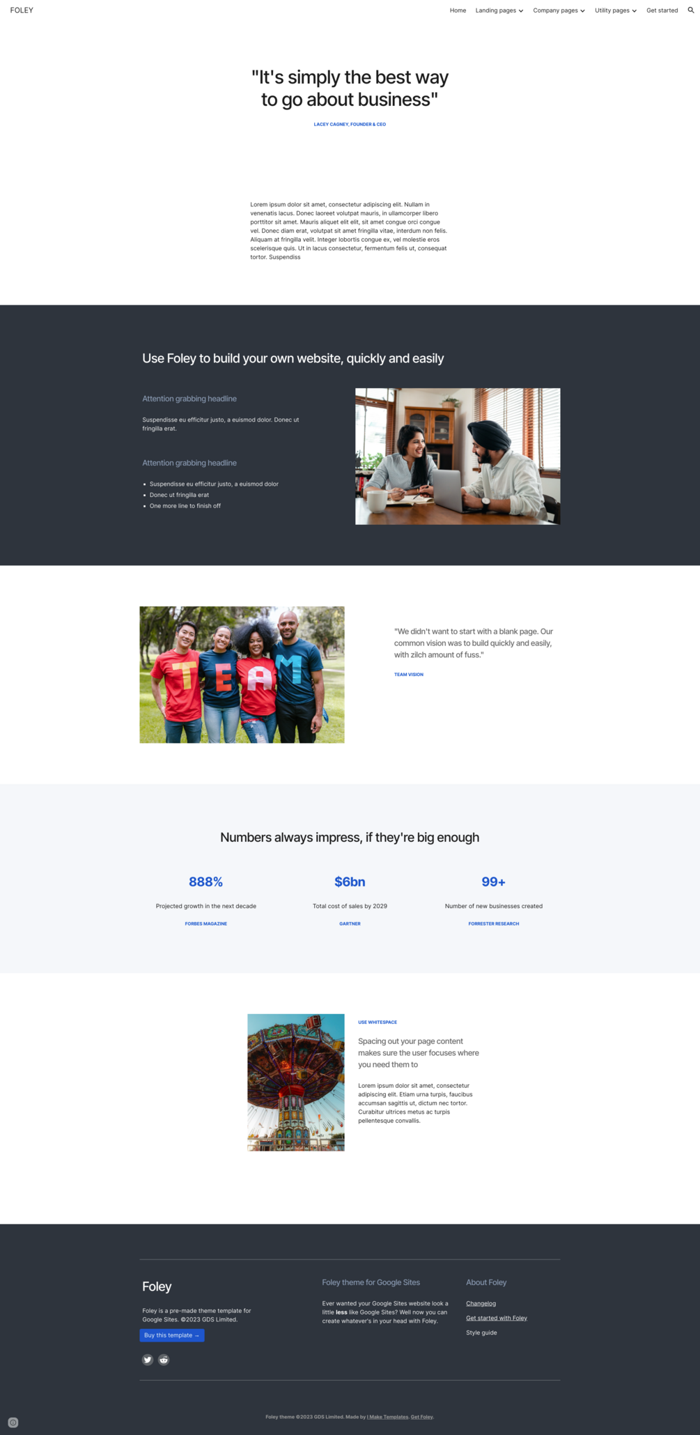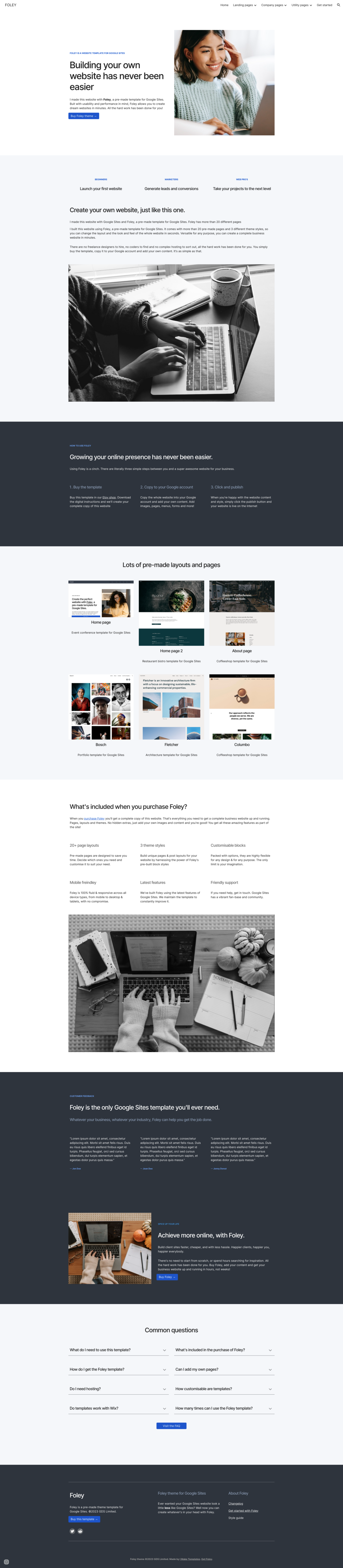 ⚡ Foley : Multipurpose template for Google Sites. 30+ page layouts and 2 themes!