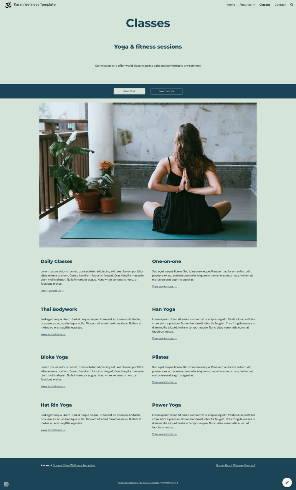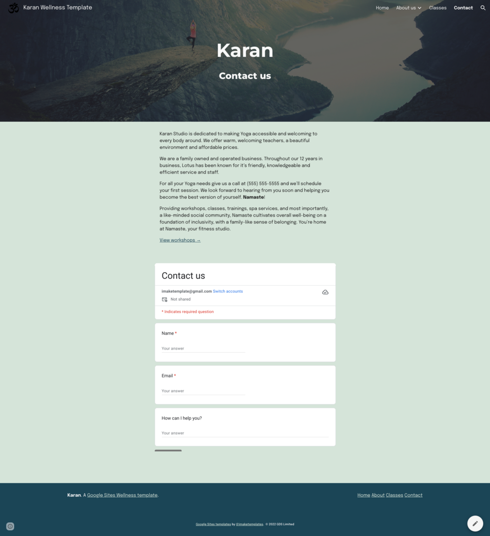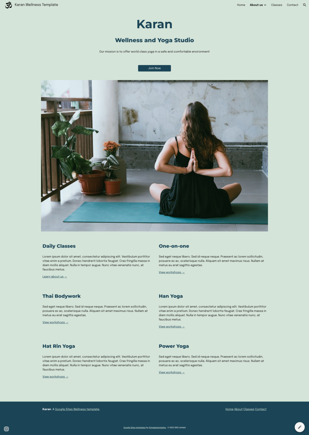 Karan - A free Wellness / Yoga studio / Health template for Google Sites