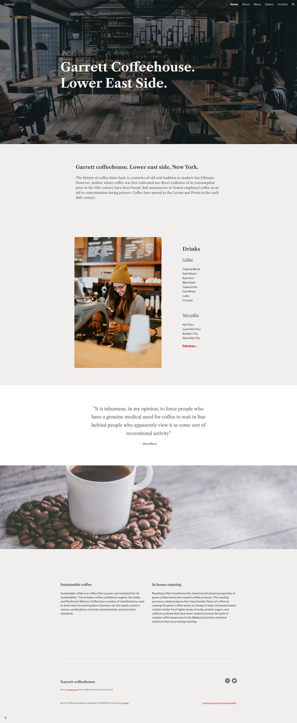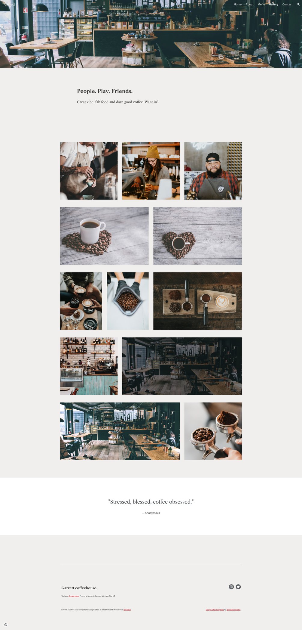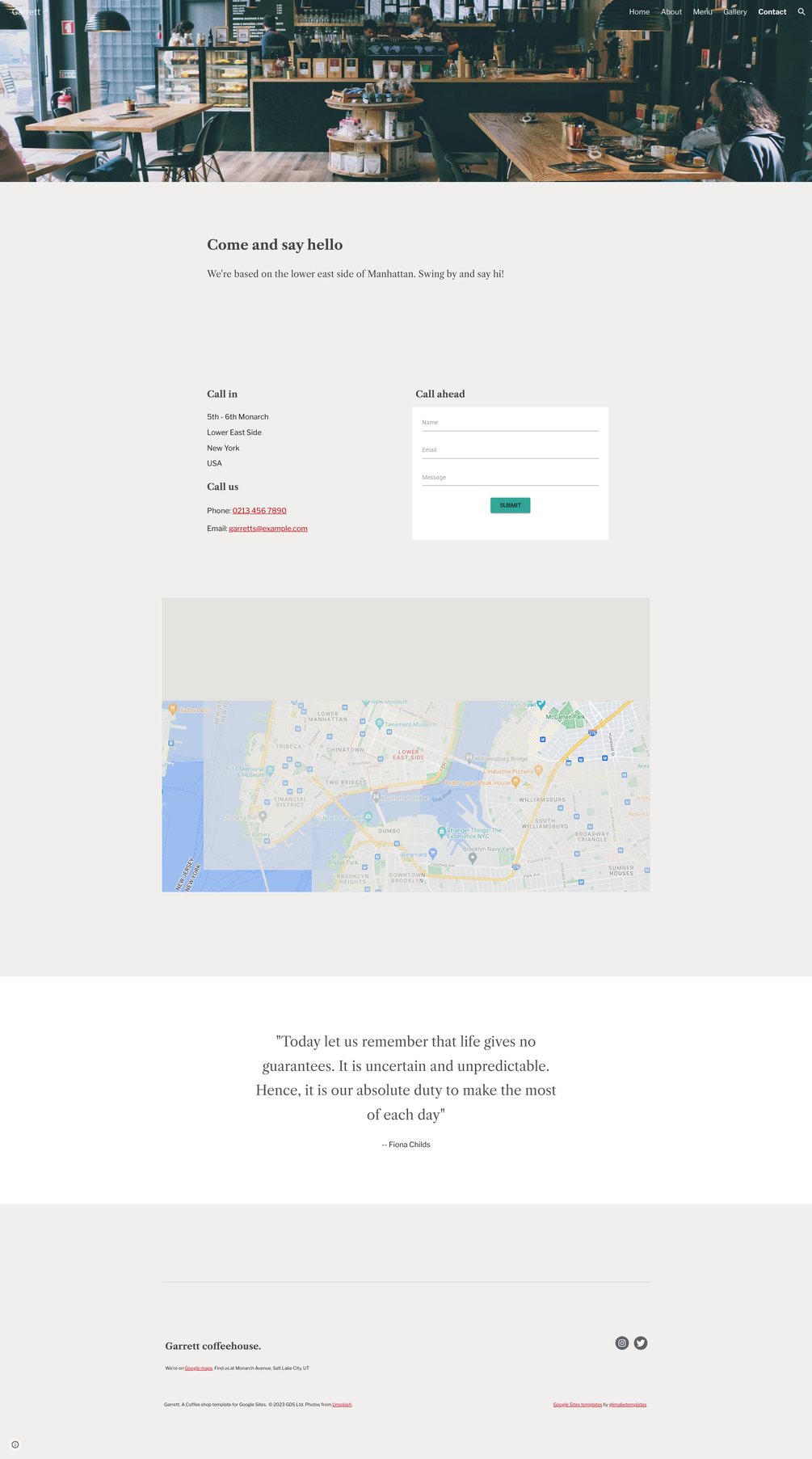 ☕ Garrett : Coffee shop / bistro template for Google Sites.
